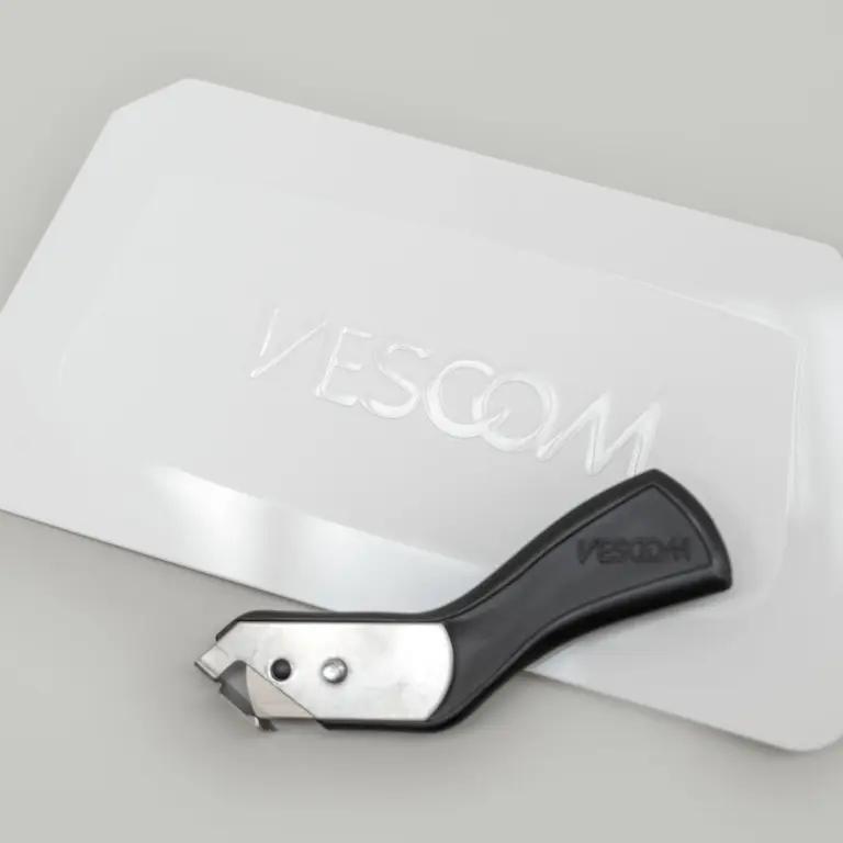 Using the correct tools is essential for the successful installation of Vescom wallcovering. In addition to general tools, such as a block brush, short-haired synthetic sheepskin roller, tape measure, plumb line, Stanley knife and scissors, we recommend the Vescom Spatula and Vescom Knife, both of which are available upon request.