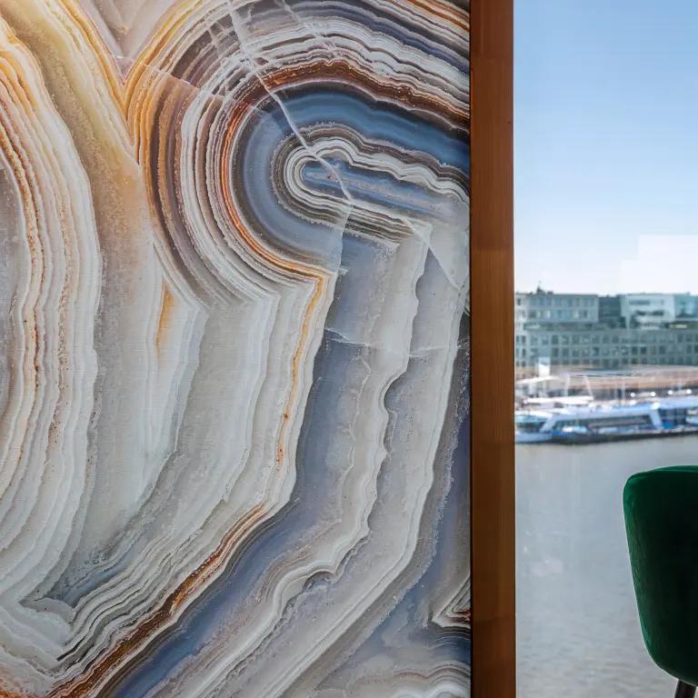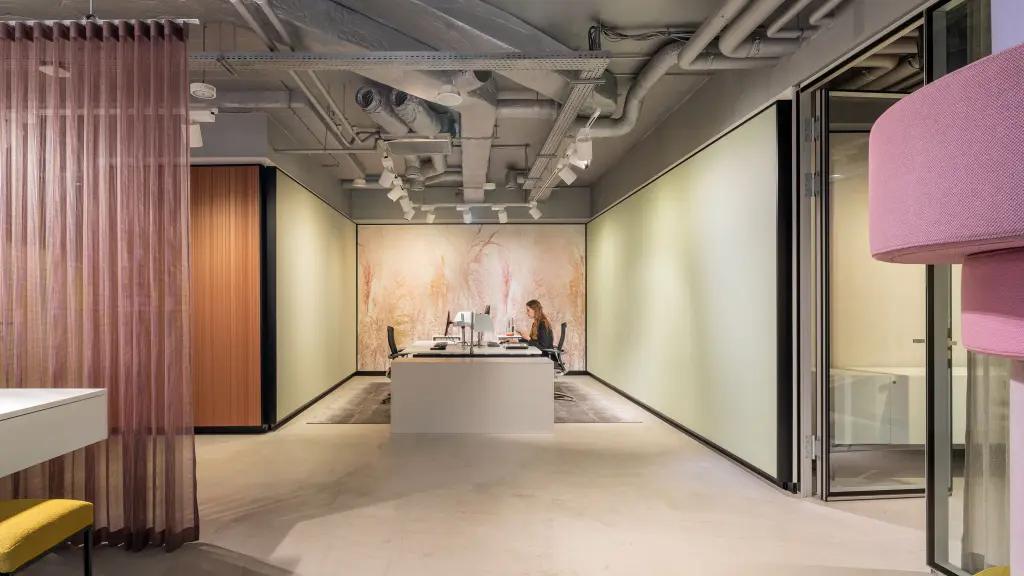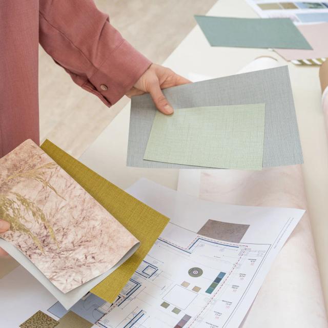 Popular bestsellers from Vescom’s standard wallcovering collection such as Melvin and Kilby can be customised through digital printing, giving architects and designers the advantage of combining personalised printed areas with non-printed wall sections – all with the same material.