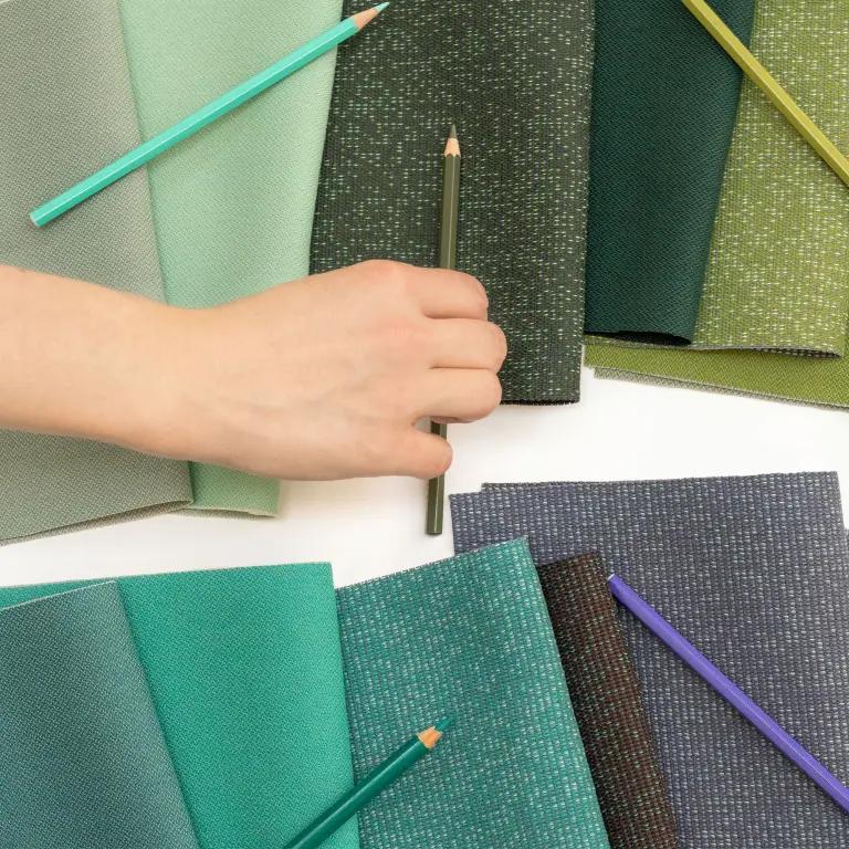 Colour Connect is the cornerstone of Vescom’s assortment of 100% post-consumer recycled content upholstery – the material solution that links everything together.