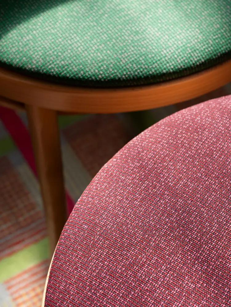 Colour Connect is the cornerstone of Vescom’s assortment of 100% post-consumer recycled content upholstery – the material solution that links everything together. What may appear from afar to be a plain fabric has a surprising depth, thanks to the fact that it’s a woven yarn-dyed fabric with different tones in the background. Whether through their accent or main colour, the 43 vibrant colourways of Colour Connect not only become companions to Zenith but also harmonise with our other upholstery fabrics, making the material a versatile base for any upholstery scheme. A simple fabric with a dry, matte look and feel that gains more meaning through its connectability.