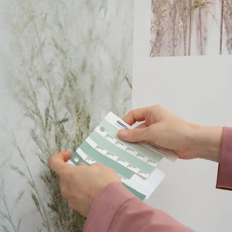 Our vinyl wallcovering is produced in-house using environmentally friendly methods, with low VOC emissions. We use water-based inks, phthalate-free vinyl films, and are part of VinylPlus®, promoting the sustainable production and use of vinyl.