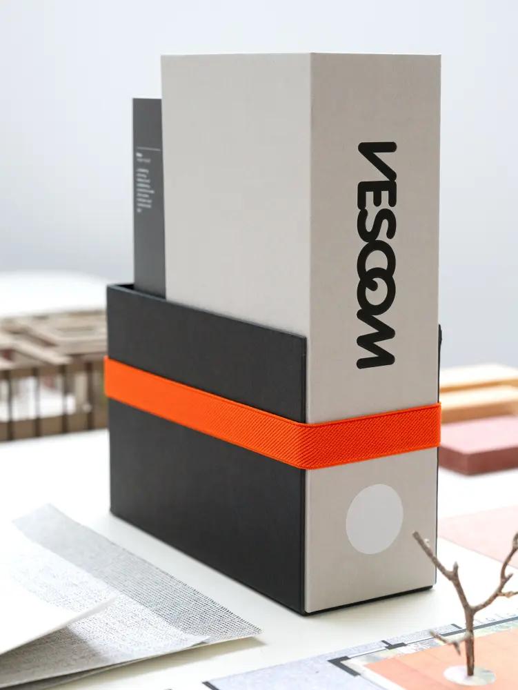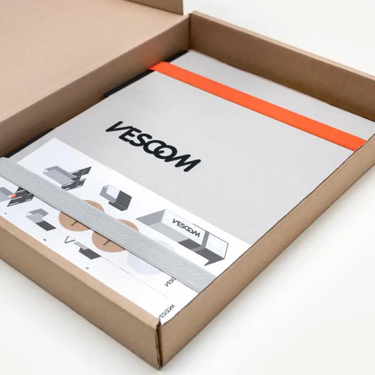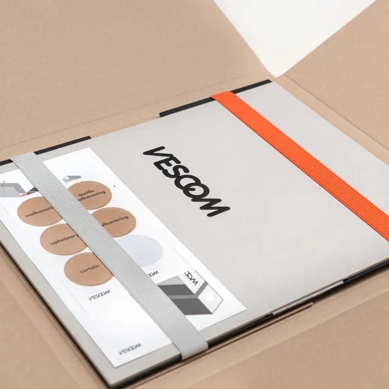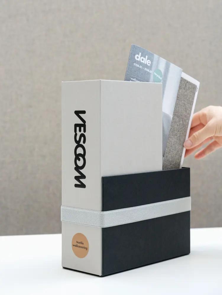 Our sample card box saves time and resources, aligning with Vescom’s sustainability agenda in multiple ways. It allows those in the A&D community to decide for themselves which sample cards they want to receive. They can order what they need – no more, no less – reducing waste and letting them concentrate on what’s essential. Made in the Netherlands from 100% recycled and recyclable paper, the box comes flat-packed, reducing the environmental impact of packaging and shipping. Designed for simplicity, the box is easy to assemble – like sealing an envelope.