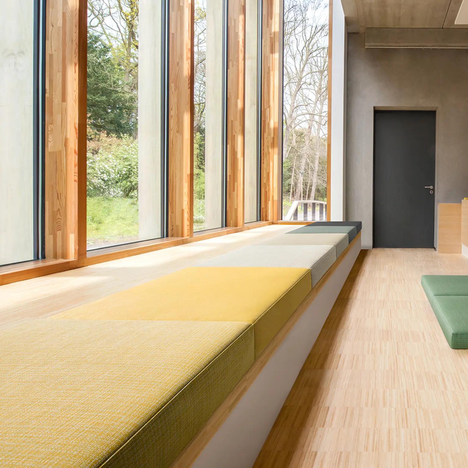 With its textile look and feel, Vescom vinyl upholstery can add an essential layer of comfort to an interior while meeting safety requirements. Disinfectable and safe to clean with all-purpose cleaners, the material is resistant to degradation from continual sanitisation. Its optimal resistance to sweat, blood and sebum and high resistance to urine make it ideal for use in care facilities.