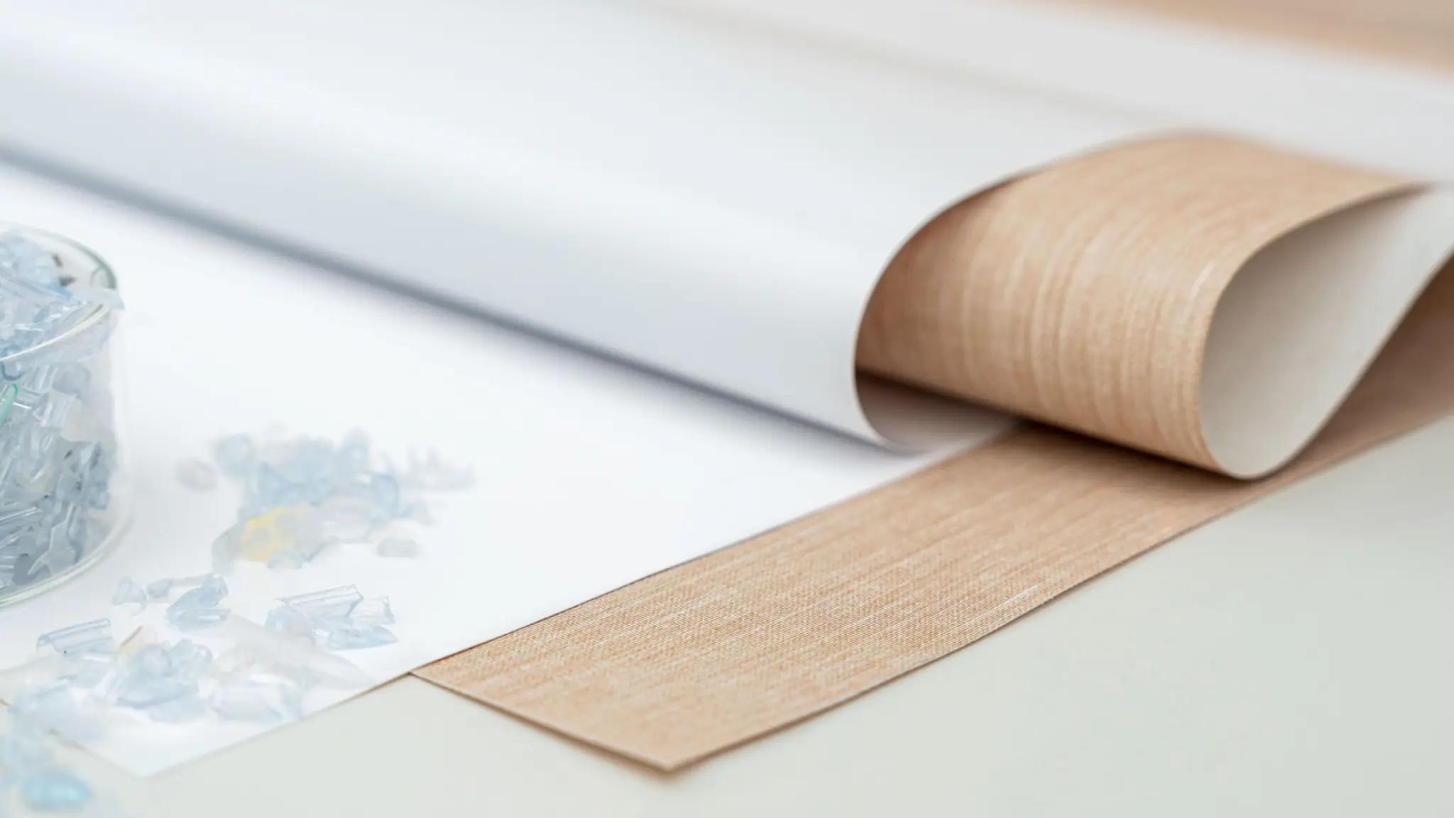We introduced the first vinyl wallcovering with recycled content from our own production waste. Waste is collected, sorted, shredded, melted and transformed into a base layer film containing 40% recycled material. This is our first step towards a circular system reintegrating our own production waste from our wallcovering production. Our goal is to continuously increase the proportion of recycled content, post-industrial and post-consumer, in our products.